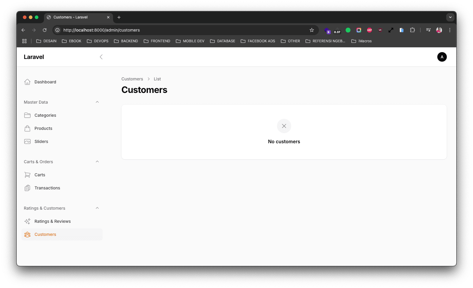 Jadi di atas kita sisakan hanya untuk index page saja. Sekarang jika teman-teman reload project-nya dan klik pada menu Customers, maka hasilnya kurang lebih seperti berikut ini.
